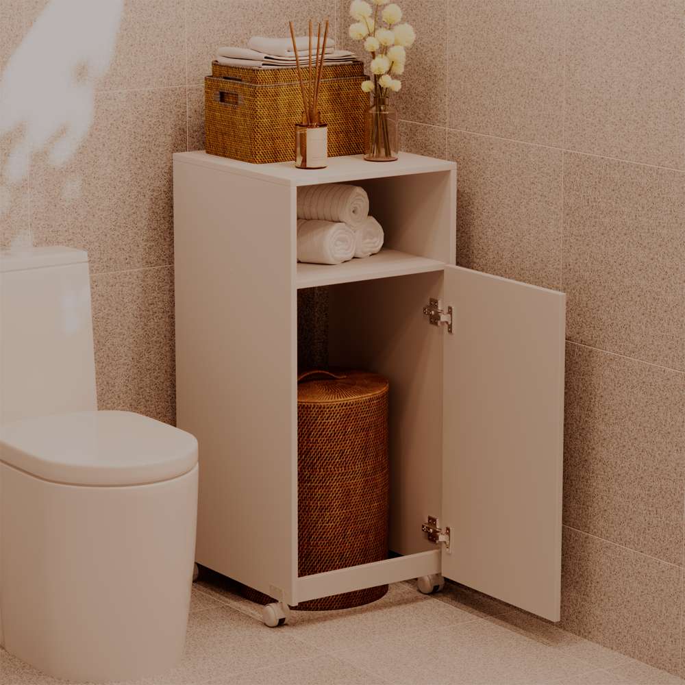 Com design compacto e funcional, ele acomoda perfeitamente um cesto de roupa, deixando o ambiente mais bonito e organizado. Além disso, possui rodinhas que facilitam a movimentação, tornando a limpeza e a reorganização do seu banheiro muito mais prática.