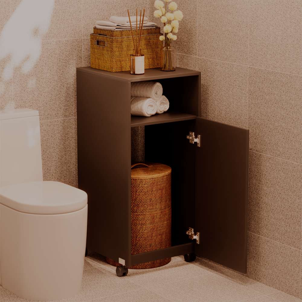 Com design compacto e funcional, ele acomoda perfeitamente um cesto de roupa, deixando o ambiente mais bonito e organizado. Além disso, possui rodinhas que facilitam a movimentação, tornando a limpeza e a reorganização do seu banheiro muito mais prática.