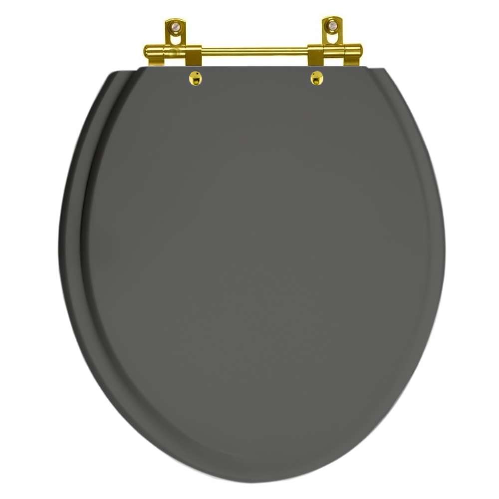 O Assento Sanitário Convencional Oval Universal Cinza Escuro com Ferragem Dourada é a opção ideal para quem busca combinar funcionalidade com elegância em seu banheiro.