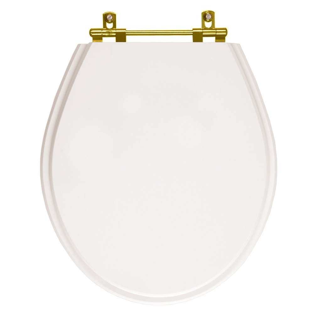Assento Sanitário Poliéster Carina Branco para vaso Ideal Standard Com Ferragem Dourada, inovação com qualidade para o seu banheiro. Este Assento Sanitário é produzido em Resina de Poliéster. Totalmente impermeável, com acabamento brilhante e ferragem dourada muito resistente que não enferruja.