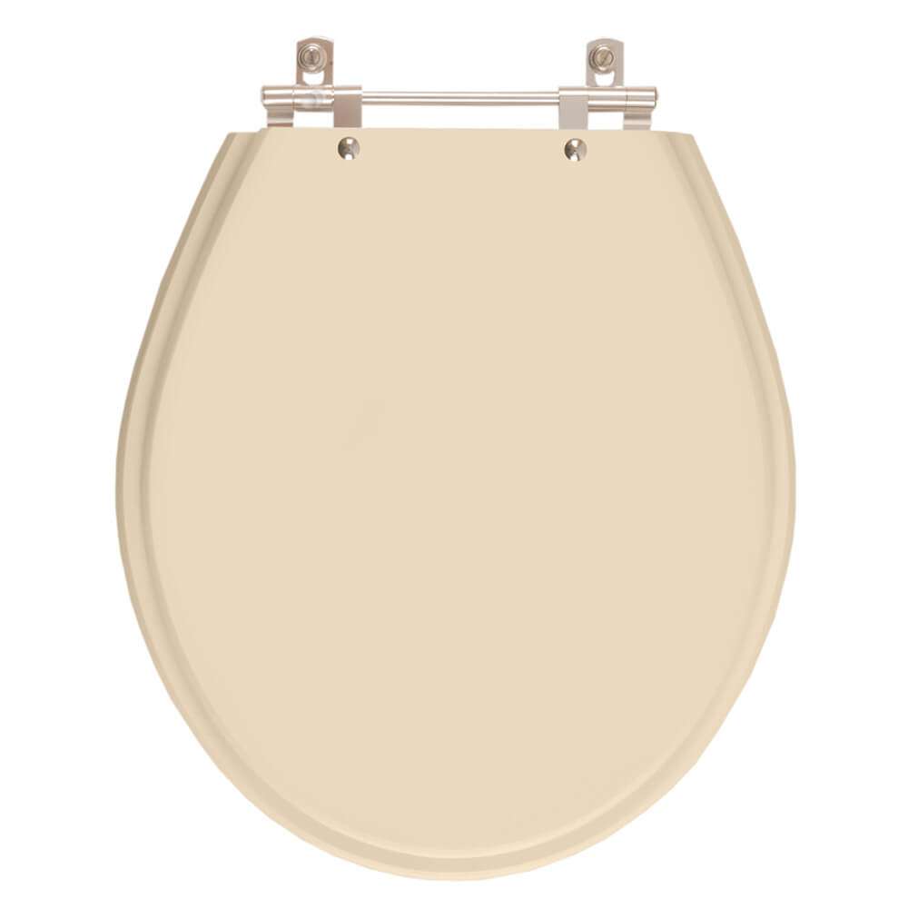 O encaixe do assento sanitário no vaso é feito por uma ferragem metálica que não oxida e não enferruja.