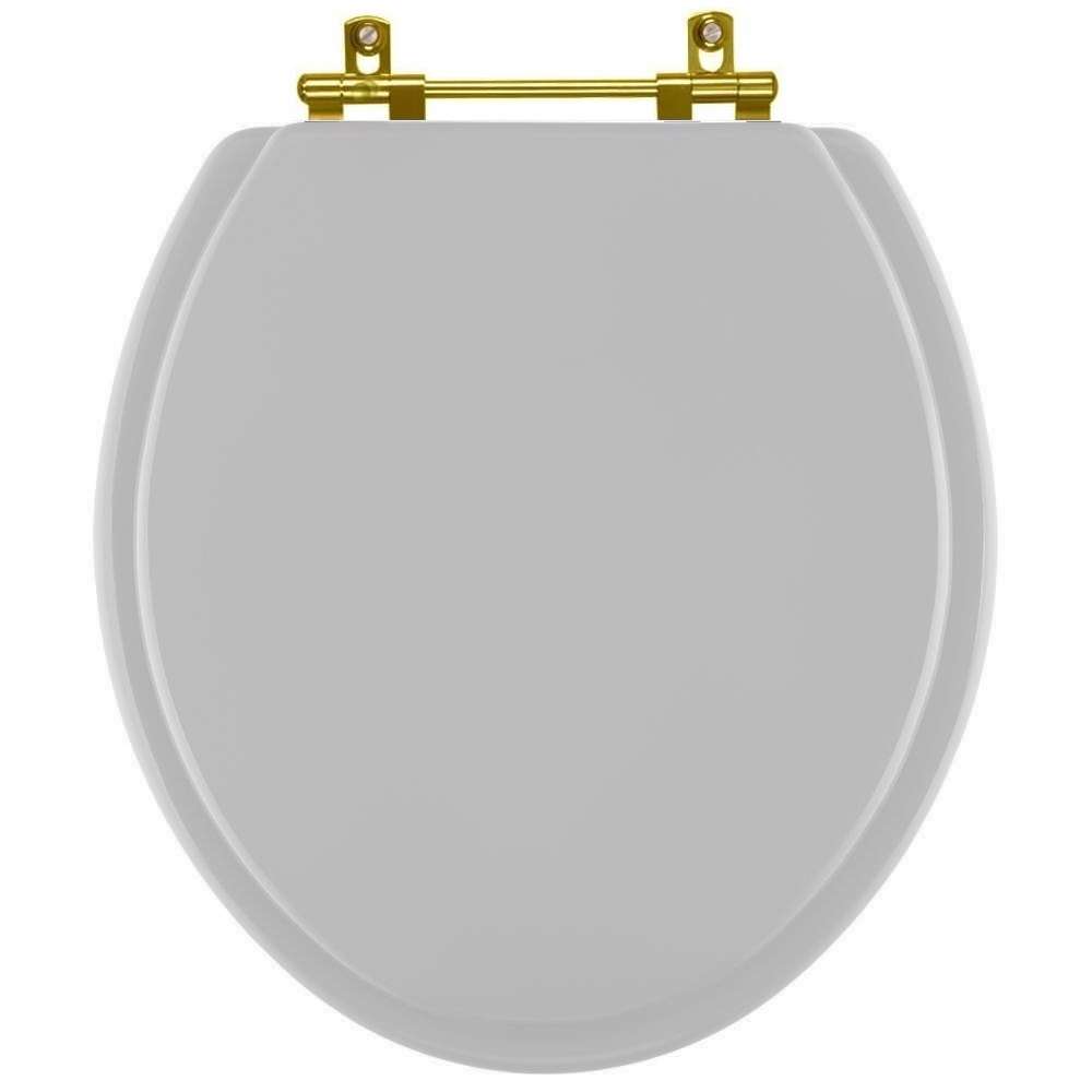 O Assento Sanitario Poliéster Convencional Oval Cinza Prata para vaso Celite com Ferragem Dourada é a opção ideal para quem busca combinar funcionalidade com elegância em seu banheiro.