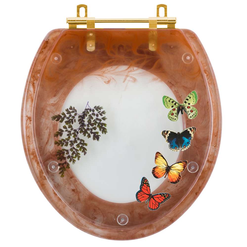 O Assento Sanitário Poliéster Oval Convencional Caramelo com 4 Borboletas para todas as marcas Com Ferragem Dourada é a opção ideal para quem busca combinar funcionalidade com elegância em seu banheiro.