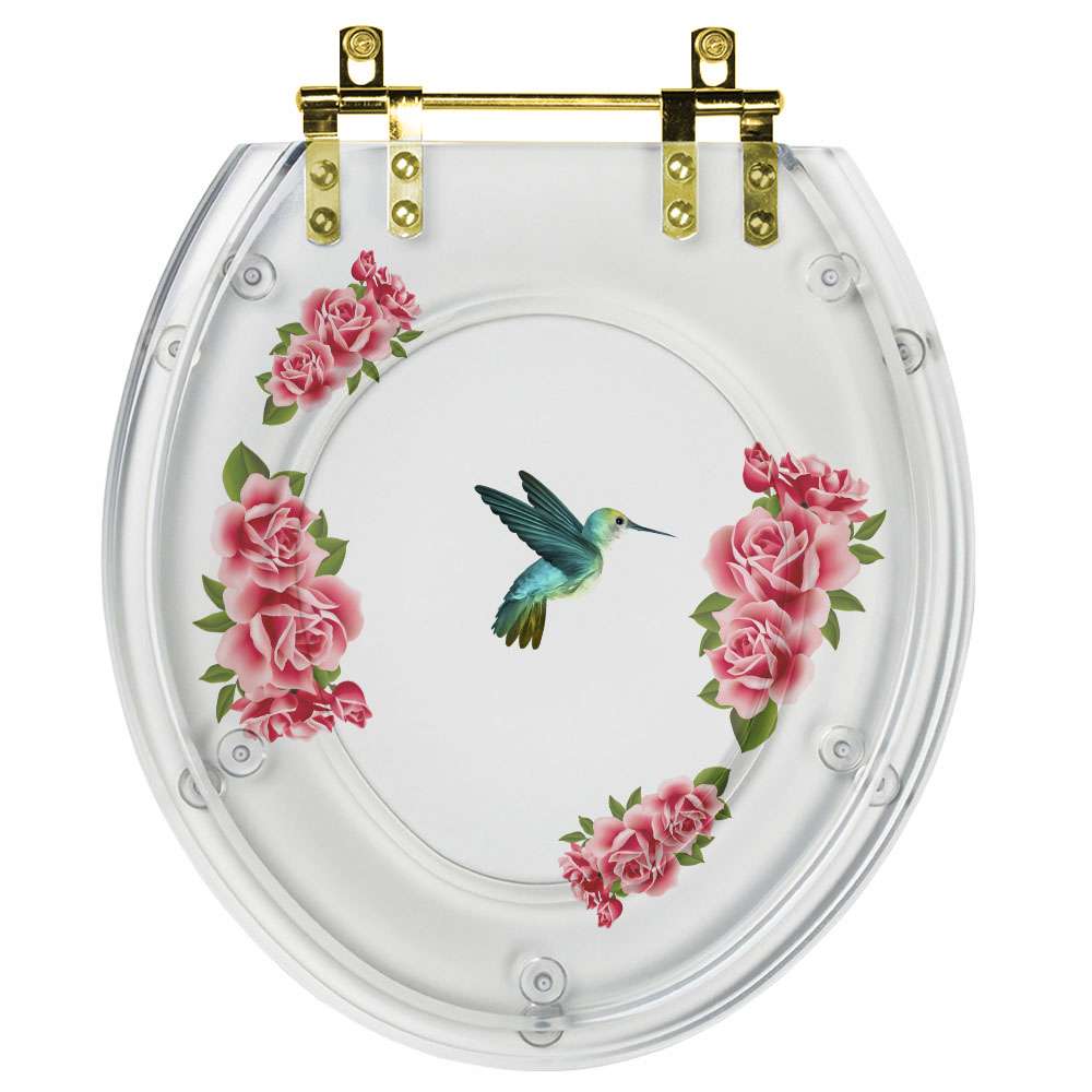 Assento Sanitário Poliéster Convencional Cristal Beija Flor para vaso Todas as marcas Com Ferragem Dourada é a escolha perfeita para seu banheiro trazendo beleza e praticidade. Esta Tampa de Vaso é fabricada 100% em Resina Virgem de Poliéster. É impermeável, ultra resistente, tem acabamento brilhante e ferragem dourada que não enferruja.