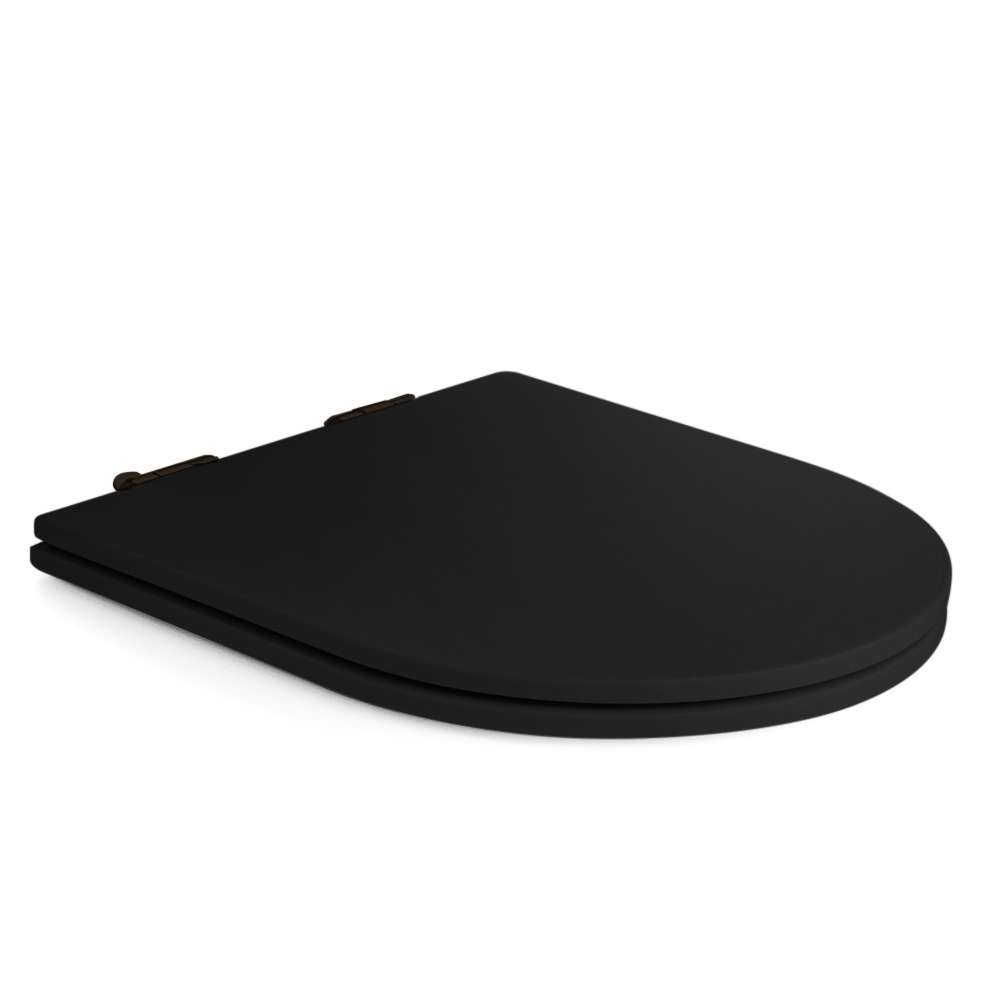 Assento Sanitário Poliester Soft Close Carrara Preto Fosco Ferragem Preta