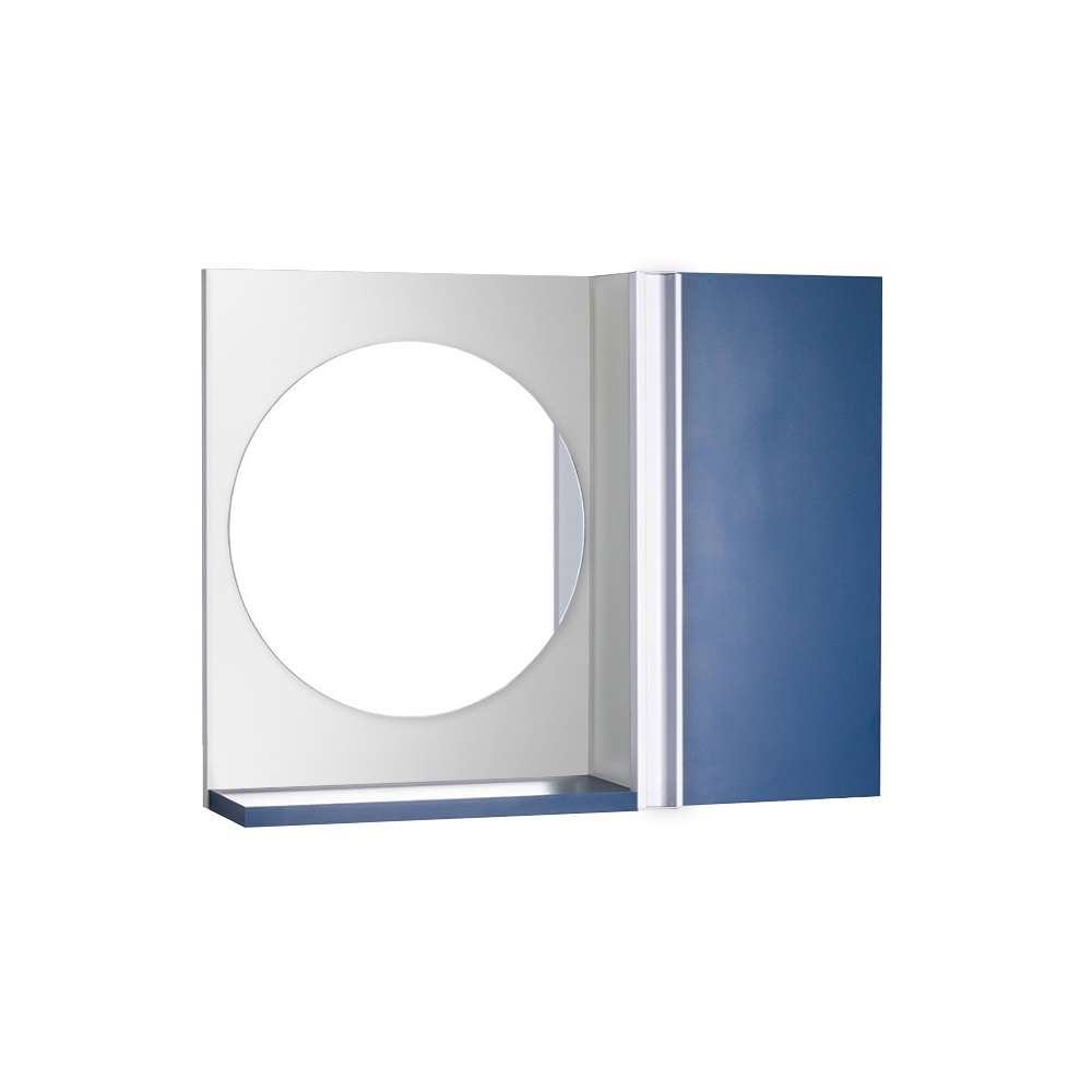 Espelho Redondo para Banheiro com Armário Azul com Barra Vertical