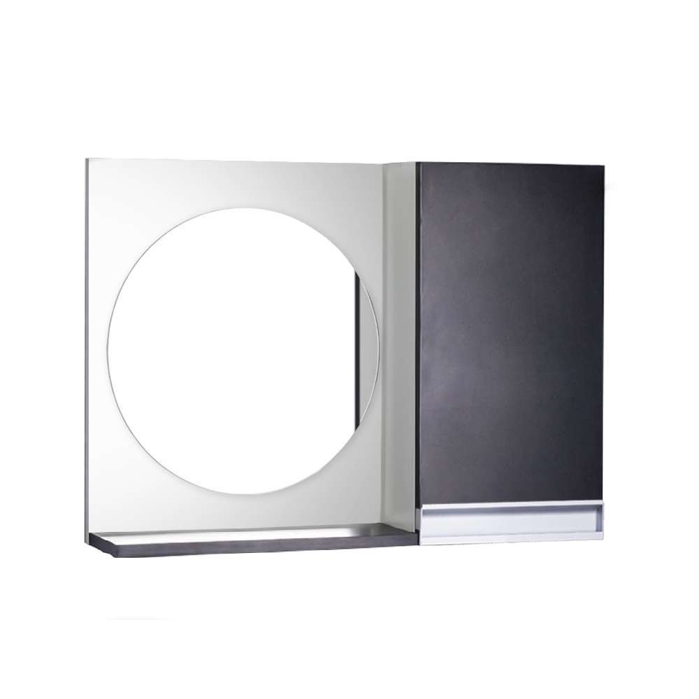 Espelho Redondo para Banheiro com Armário Preto e Branco Puxador de Metal