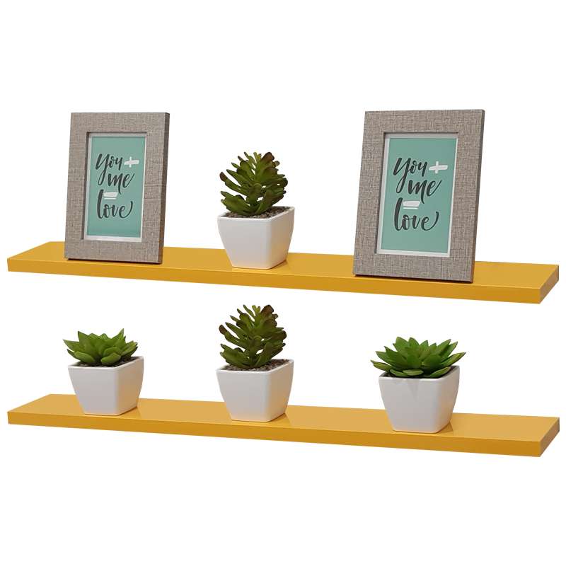 Kit 2 Prateleiras 50 x 15cm Amarela Suporte Invisível