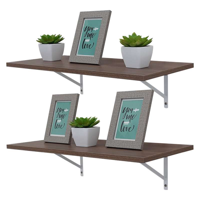 Kit 2 Prateleiras 90 x 25cm Nogal Com Mão Francesa