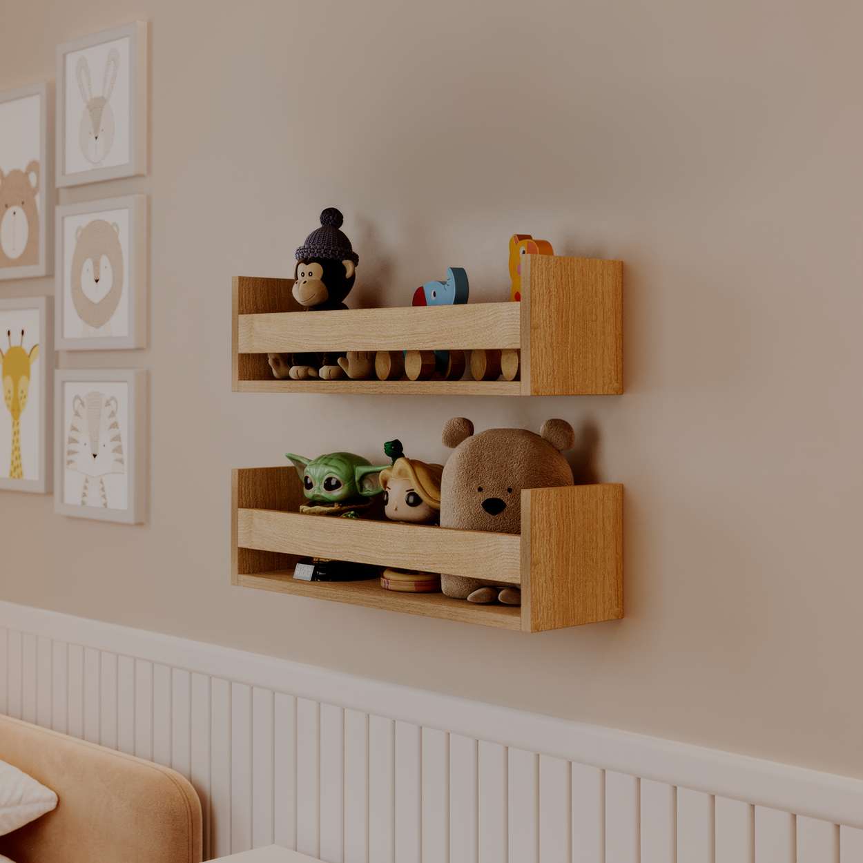 Kit 2 Prateleiras Porta Brinquedos Carvalho 50 x 12cm Suporte Invisivel