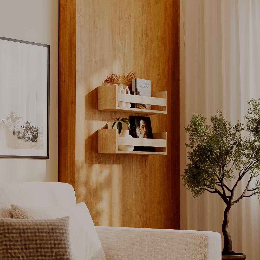 Kit 2 Prateleiras Porta Livros Carvalho 60 x 12cm Suporte Invisivel é perfeita para tornar o seu ambiente mais criativo e moderno.