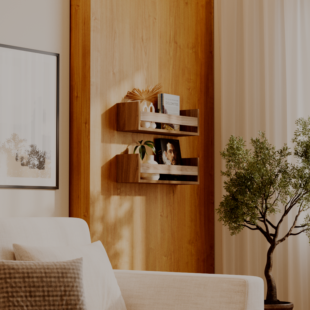 A Kit 2 Prateleiras Porta Livros Freijó 70 x 12cm Suporte Invisivel é perfeita para tornar o seu ambiente mais criativo e moderno.