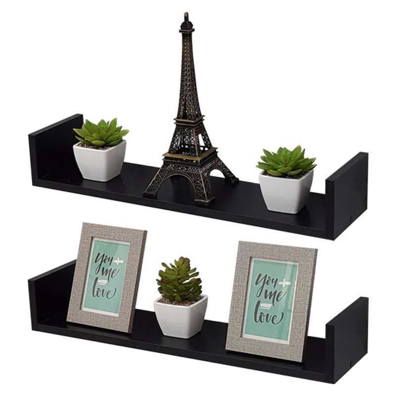 Kit 2 Prateleiras U 100 x 15cm Preta Suporte Invisível