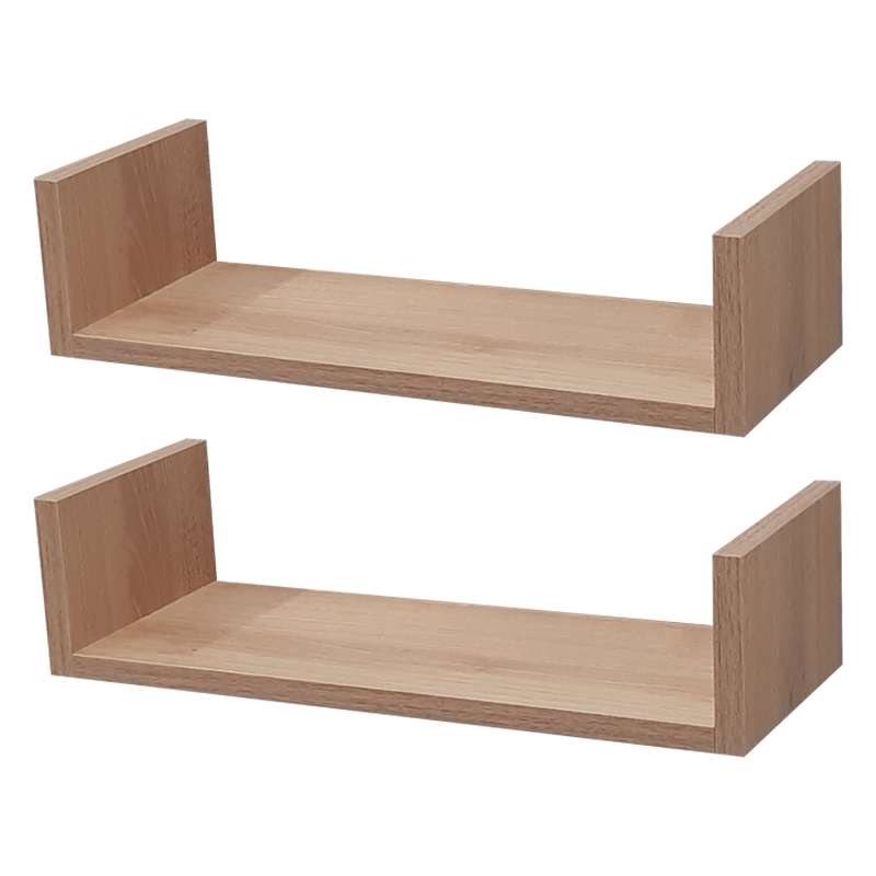 Kit 2 Prateleiras U 30 x 10cm Carvalho Suporte Invisível