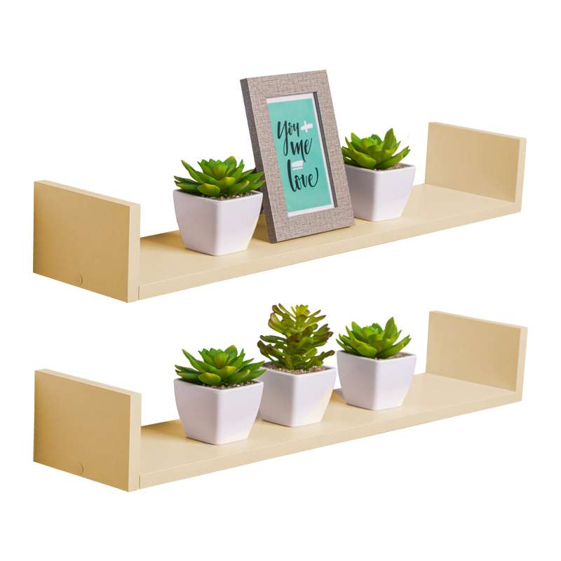 Kit 2 Prateleiras U 60 x 15cm Bege Claro Suporte Invisível
