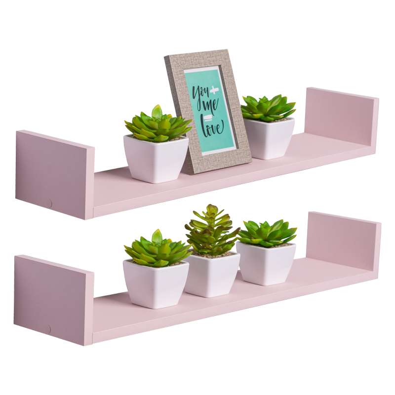 Kit 2 Prateleiras U 80 x 10cm Rosa Claro Suporte Invisível
