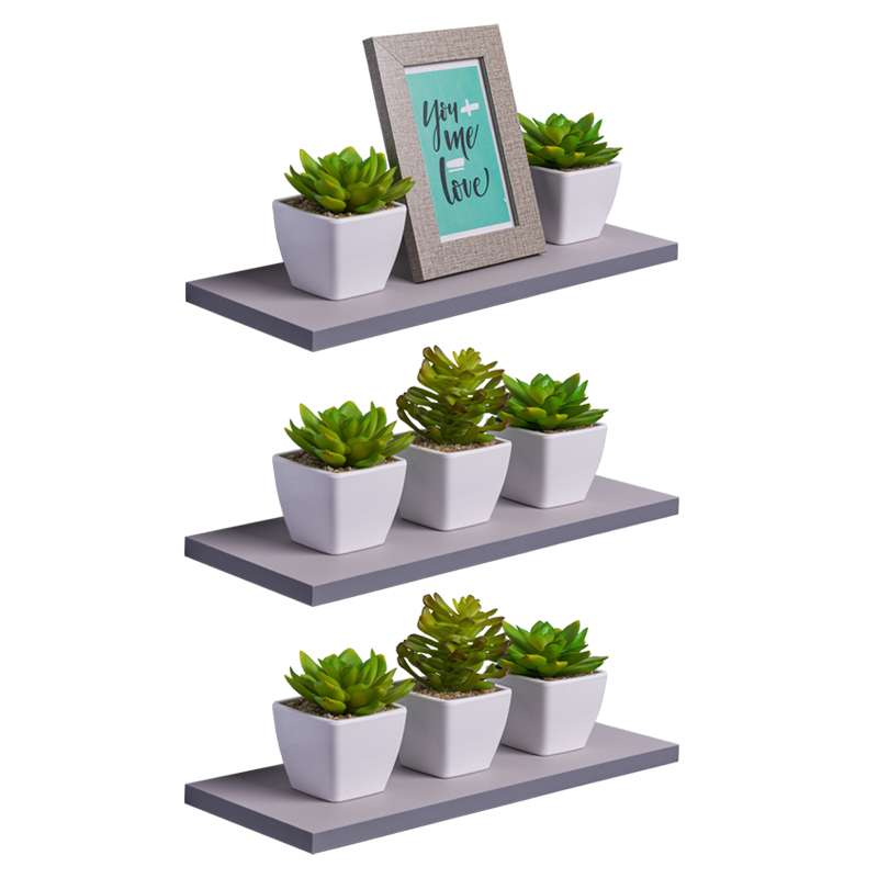 Kit 3 Prateleiras 40 x 15cm Cinza Claro Suporte Invisível