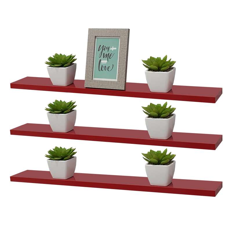 Kit 3 Prateleiras 60 x 10cm Vermelha Suporte Invisível