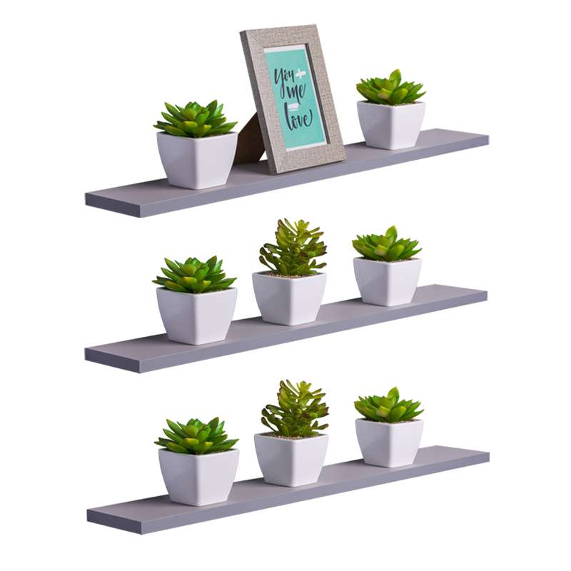 Kit 3 Prateleiras 70 x 10cm Cinza Claro Suporte Invisível