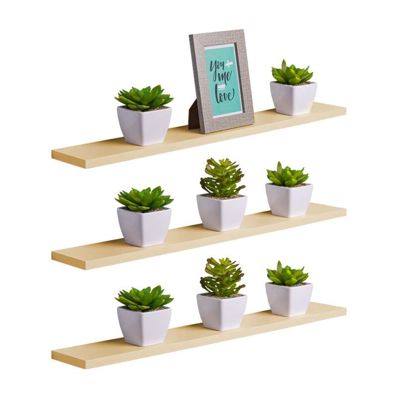 Kit 3 Prateleiras 70 x 20cm Bege Claro Suporte Invisível