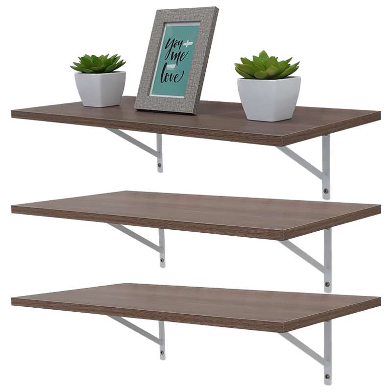 Kit 3 Prateleiras 90 x 25cm Nogal Com Mão Francesa