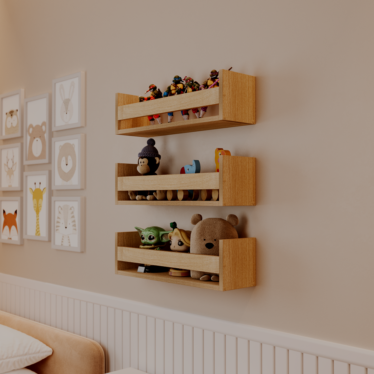 Kit 3 Prateleiras Porta Brinquedos Carvalho 70 x 12cm Suporte Invisivel