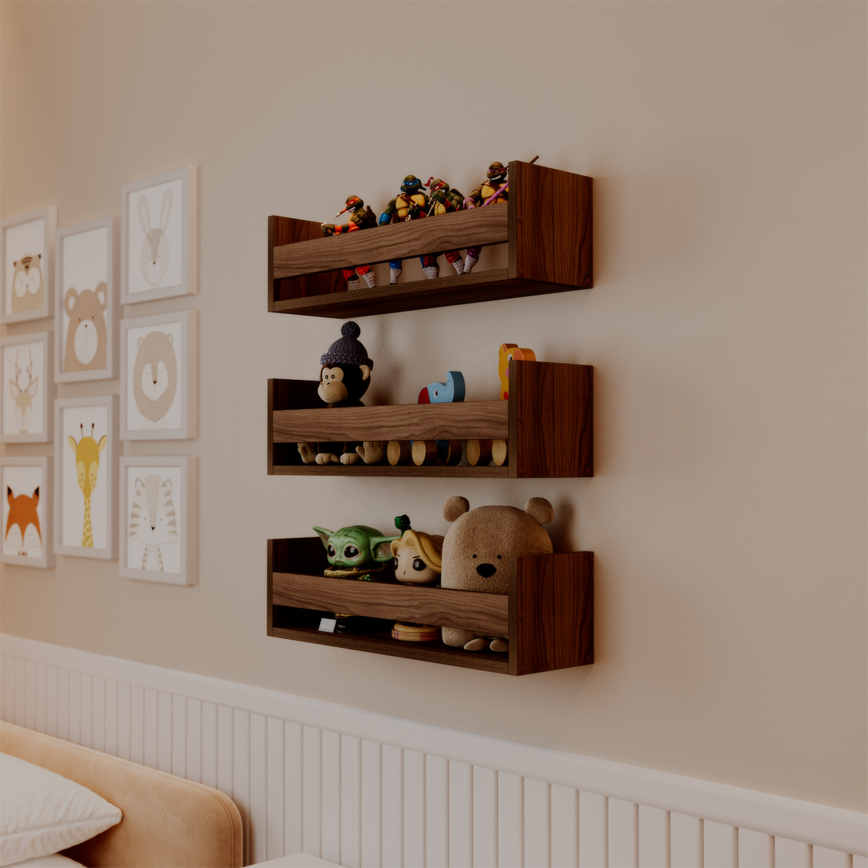 Kit 3 Prateleiras Porta Brinquedos Nogal 70 x 12cm Suporte Invisivel