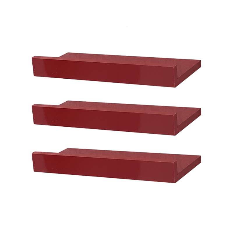 Kit 3 Prateleiras Porta Quadros 40 x 15cm Vermelha Suporte Invisível