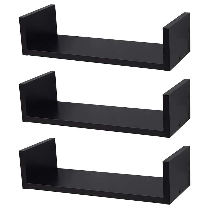 Kit 3 Prateleiras U 30 x 10cm Preta Suporte Invisível