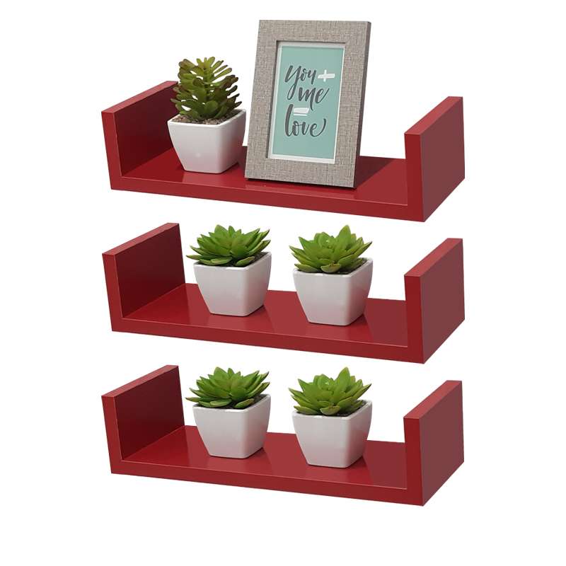 Kit 3 Prateleiras U 30 x 15cm Vermelha Suporte Invisível. A prateleira Crie Fácil foi desenvolvida pensando em deixar o seu ambiente mais organizado e criativo de forma prática e simples. Produto produzido em MDP de alta qualidade garantindo resistência e durabilidade. A prateleira é acompanhada de suporte para fixação de embutir invisível. Cor: Vermelho. Tamanho: 30 x 15cm. Material: Madeira MDP. Fixação: embutir invisível. Instruções de uso e instalação: Para fácil limpeza, utilize pano levemente umedecido. Não utilizar produtos químicos ou abrasivos. Acompanha embalagem com as instruções de montagem e fixação. *Observação: todos os itens de decoração das fotos não acompanham o produto