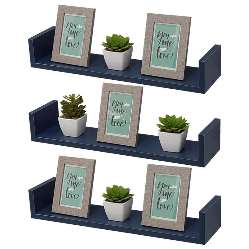 Kit 3 Prateleiras U 60 x 25cm azul Suporte Invisível. A prateleira Crie Fácil foi desenvolvida pensando em deixar o seu ambiente mais organizado e criativo de forma prática e simples. Produto produzido em MDP de alta qualidade garantindo resistência e durabilidade. A prateleira é acompanhada de suporte para fixação de embutir invisível. Cor: azul. Tamanho: 60 x 25cm. Material: Madeira MDP. Fixação: embutir invisível. Instruções de uso e instalação: Para fácil limpeza, utilize pano levemente umedecido. Não utilizar produtos químicos ou abrasivos. Acompanha embalagem com as instruções de montagem e fixação. *Observação: todos os itens de decoração das fotos não acompanham o produto