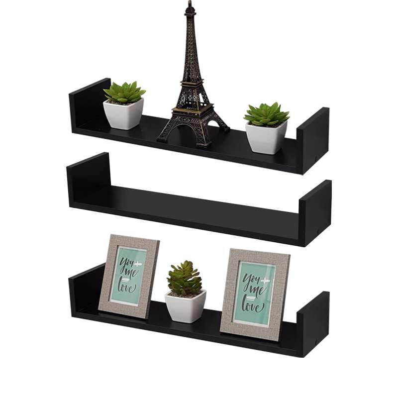 Kit 3 Prateleiras U 90 x 25cm Preta Suporte Invisível. A prateleira Crie Fácil foi desenvolvida pensando em deixar o seu ambiente mais organizado e criativo de forma prática e simples. Produto produzido em MDP de alta qualidade garantindo resistência e durabilidade. A prateleira é acompanhada de suporte para fixação de embutir invisível. Cor: Preto. Tamanho: 90 x 25cm. Material: Madeira MDP. Fixação: embutir invisível. Instruções de uso e instalação: Para fácil limpeza, utilize pano levemente umedecido. Não utilizar produtos químicos ou abrasivos. Acompanha embalagem com as instruções de montagem e fixação. *Observação: todos os itens de decoração das fotos não acompanham o produto