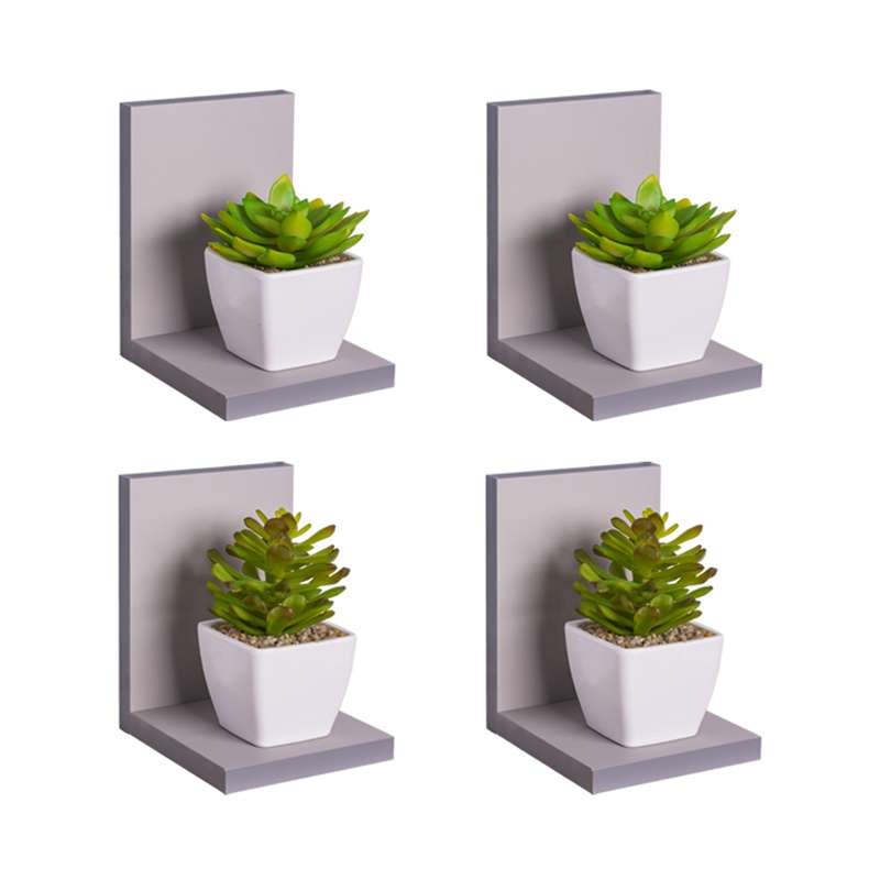 O Kit 4 Prateleiras em L 15 x 12cm Cinza Claro é a escolha perfeita para completar aquele cantinho especial da sua casa. Estas prateleiras pequenas Cinza Claros podem ser decoradas com pequenos vasos de plantas, estatuetas, porta retratos e outros objetos decorativos. Perfeitas para usar como porta troféus em quarto infantil. Muito versáteis, podem ser usadas para decoração de sala, quarto, escritório e até cozinha.