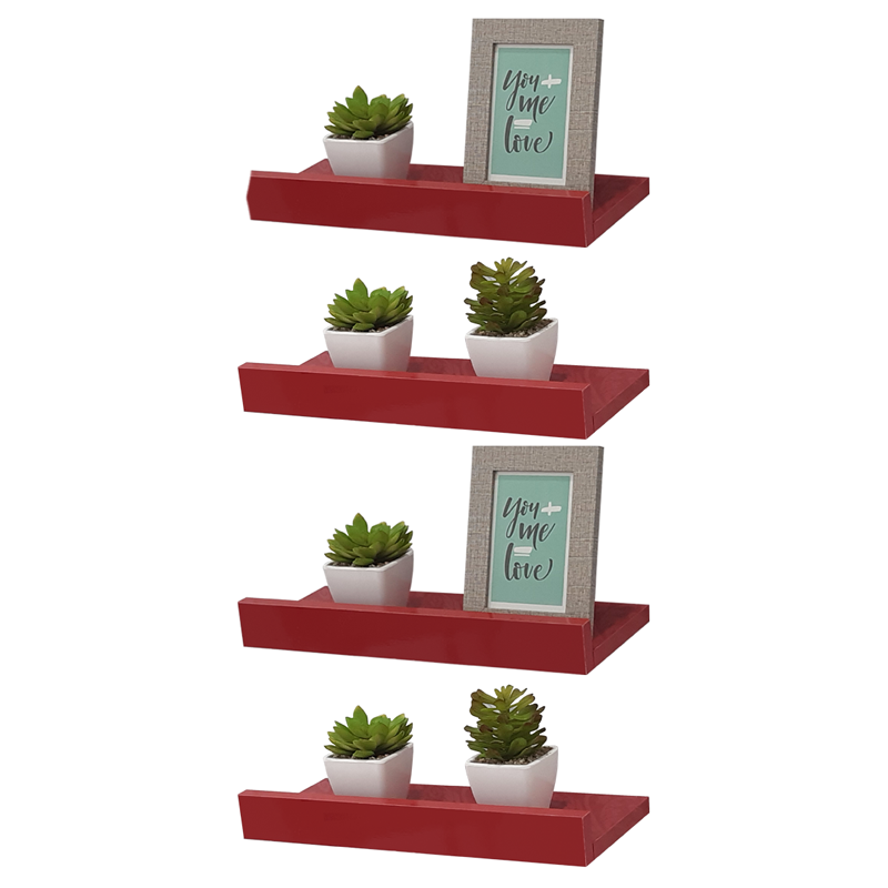 Kit 4 Prateleiras Porta Quadros 40 x 15cm Vermelha Suporte Invisível