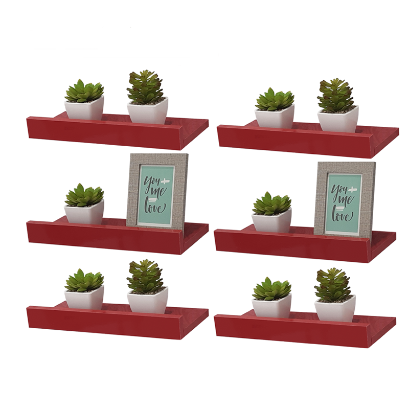 Kit 6 Prateleiras Porta Quadros 40 x 15cm Vermelha Suporte Invisível