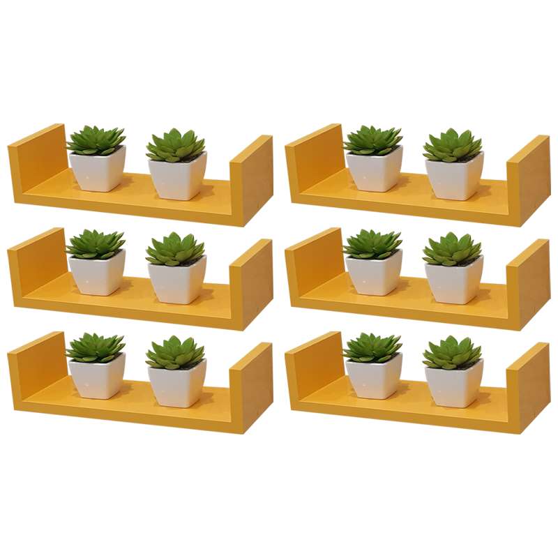 Kit 6 Prateleiras U 40 x 15cm Amarela Suporte Invisível