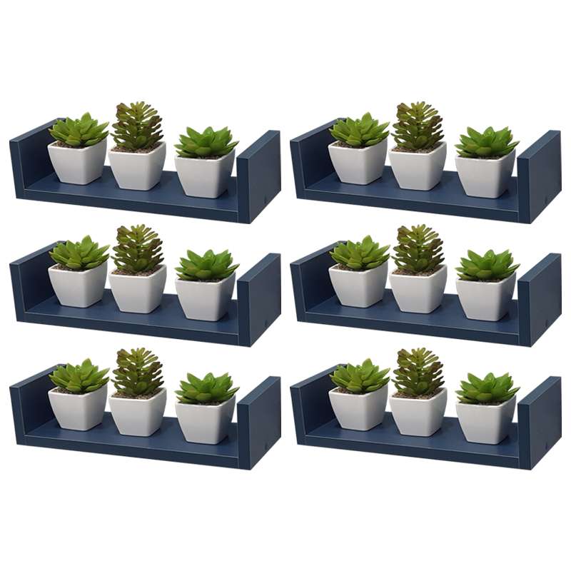 Kit 6 Prateleiras U 40 x 15cm azul Suporte Invisível