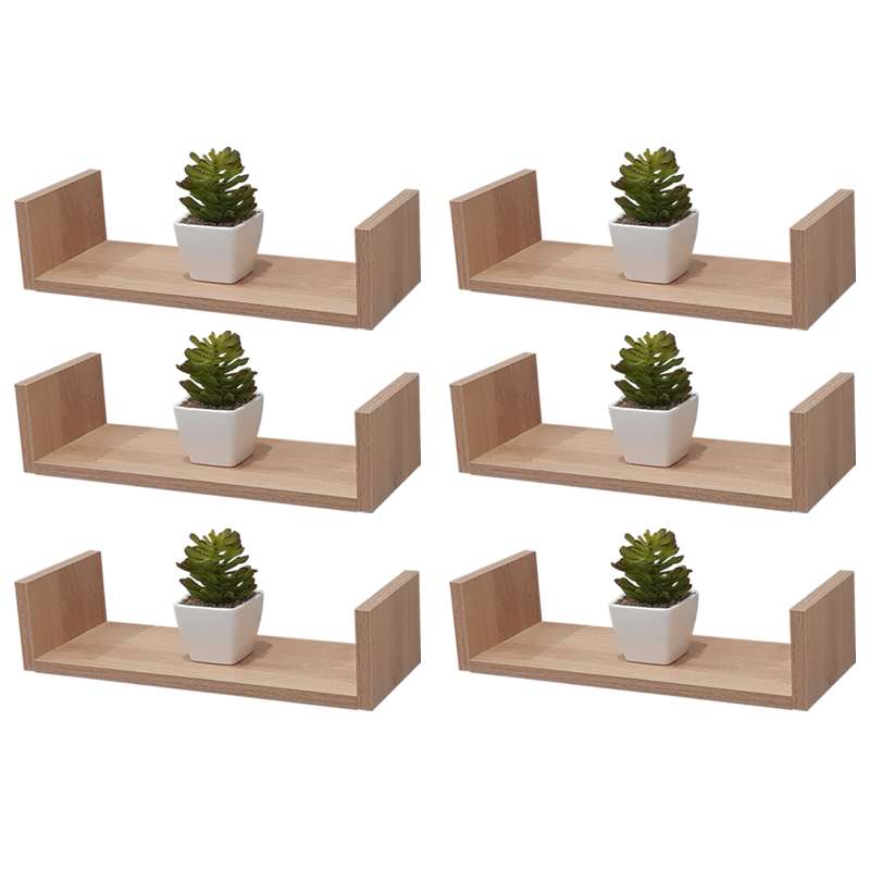 Kit 6 Prateleiras U 40 x 15cm Carvalho Suporte Invisível