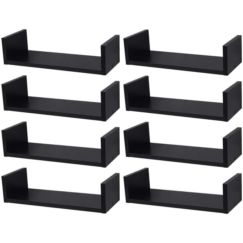 Kit 8 Prateleiras U 40 x 20cm Preta Suporte Invisível