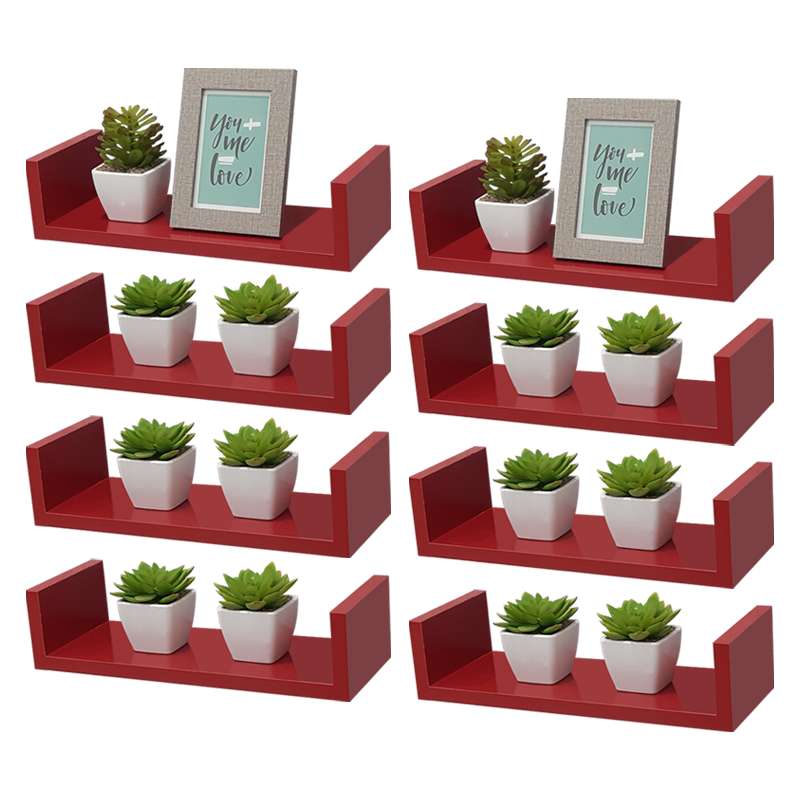 Kit 8 Prateleiras U 40 x 20cm Vermelha Suporte Invisível