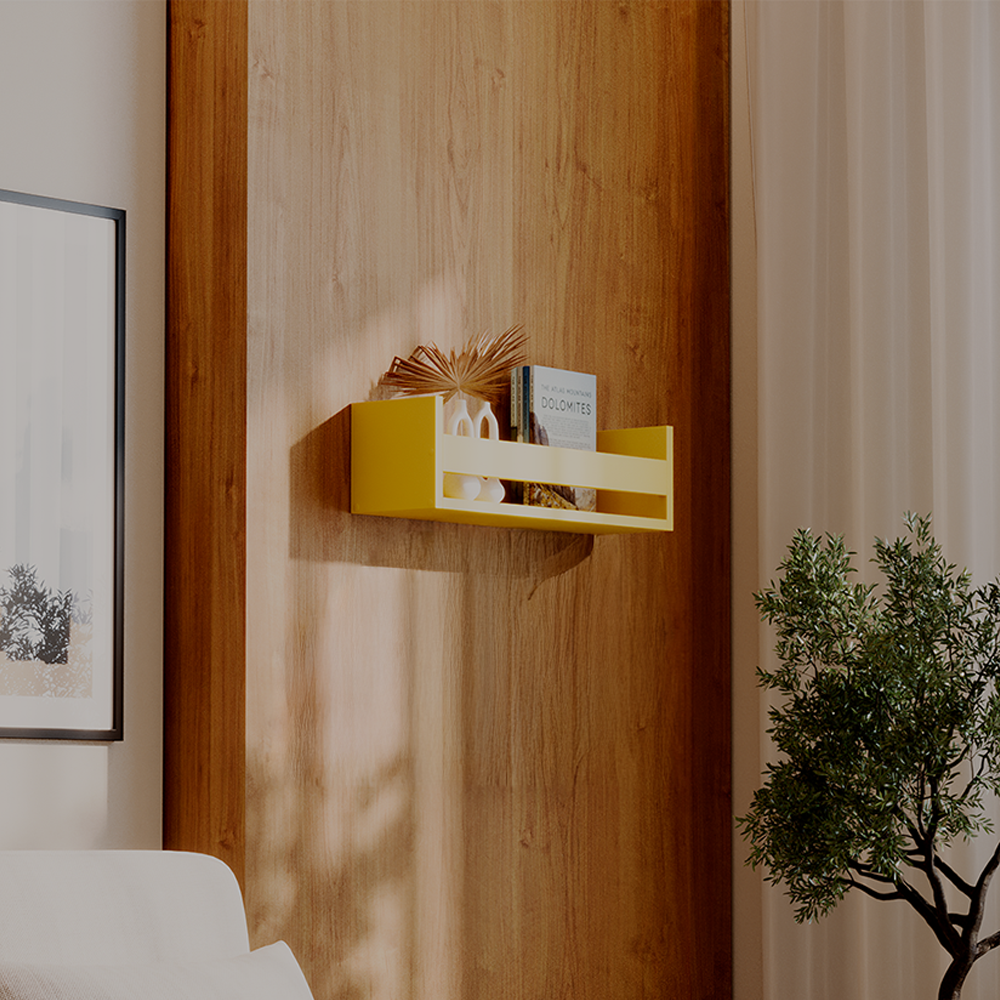 Prateleira Porta Livro Amarela 70 x 12cm Suporte Invisivel